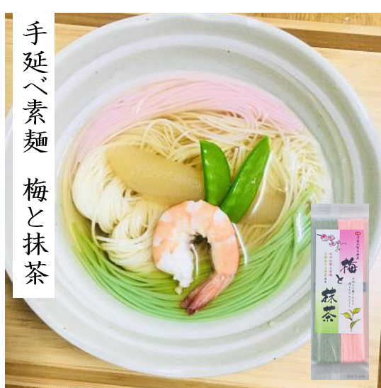 彩りを楽しめる「梅と抹茶 そうめん」