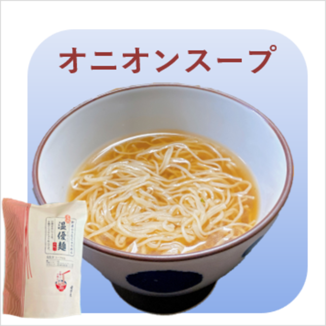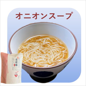 「ミニ温優麺」には新味のオニオンスープ、中華スープ、わかめスープ、柚子お吸い物の4種類のスープがついてます。