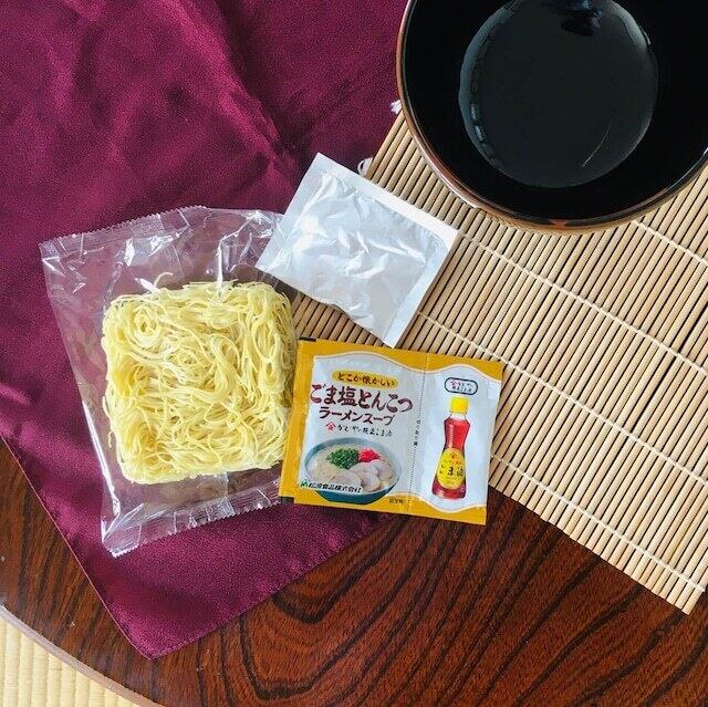 ごま塩とんこつスープ付きの即席手延べラーメンを10袋詰合せました。