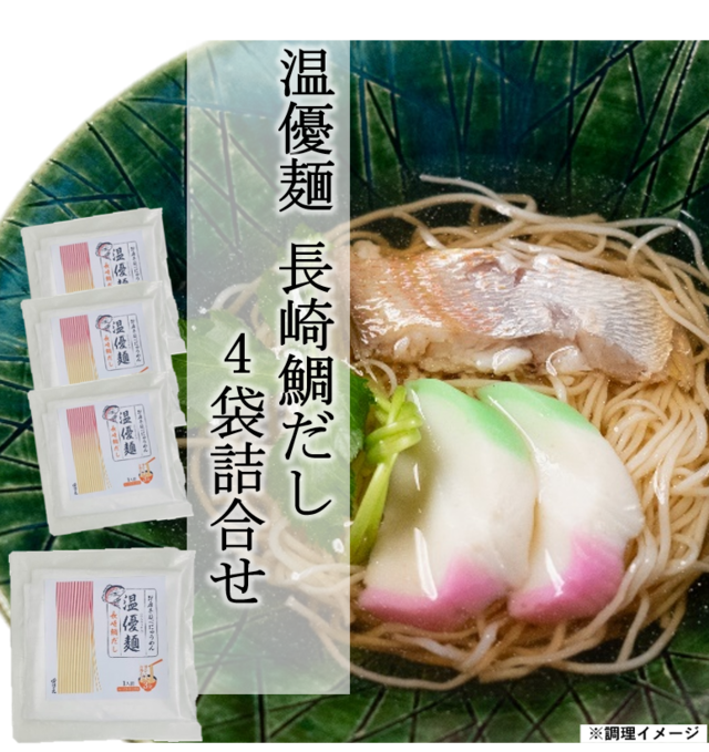 新商品 温優麺長崎鯛だしを4袋セットにした贈答用にも最適な詰合せです。